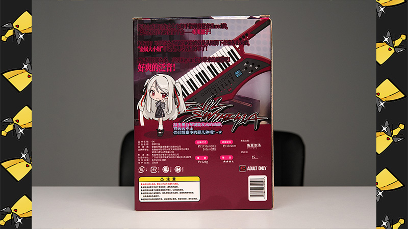 拿出盒子映入眼帘的是一位身穿哥特演出服的银色双马尾少女,手持钢琴(Shred),一边流汗一边哈气,貌似是经历了一场激情的演奏。