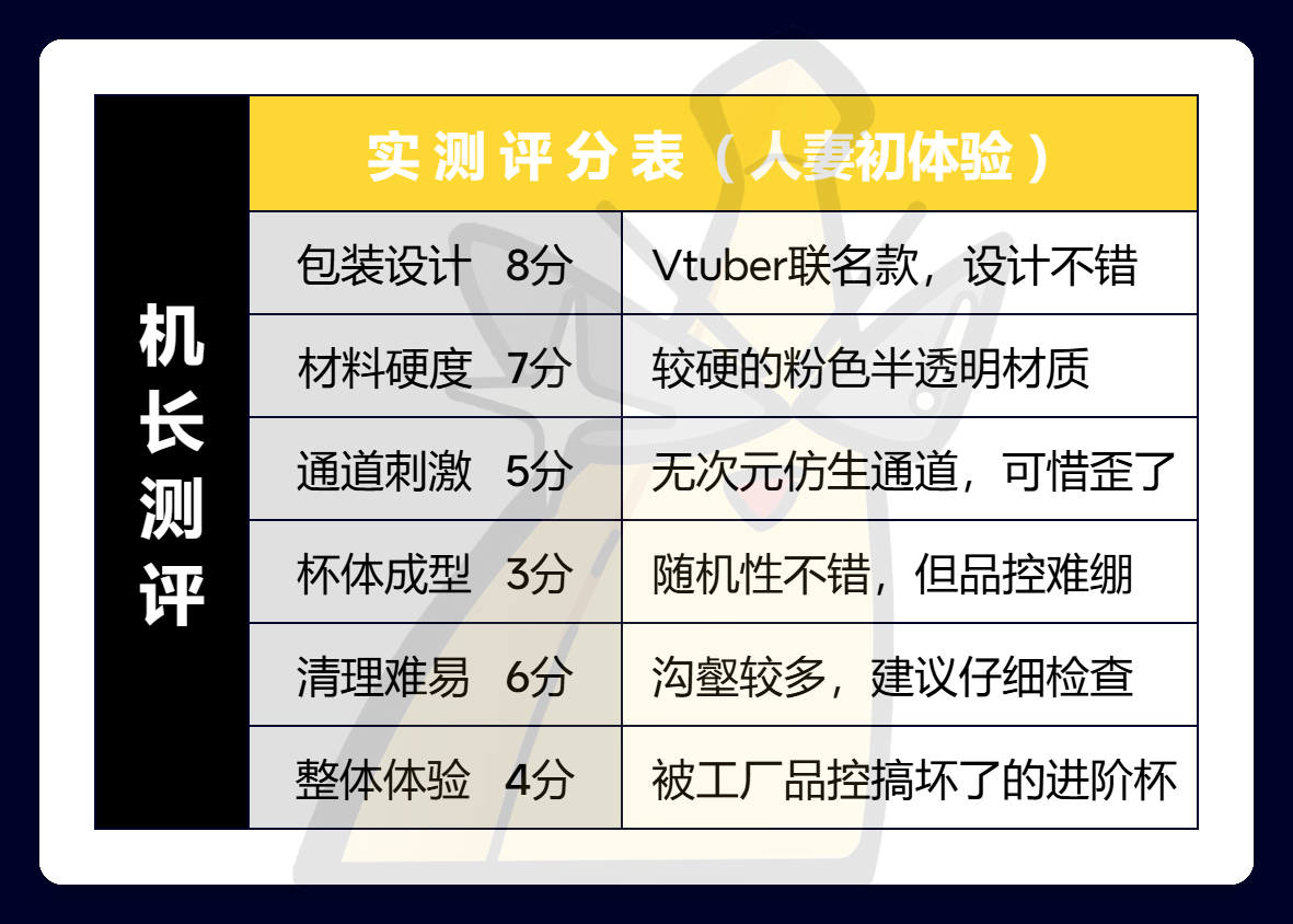 通道不错、材料不错、握持不错、处女膜的设计理念也不错,联动的虚拟主播同样也很对味